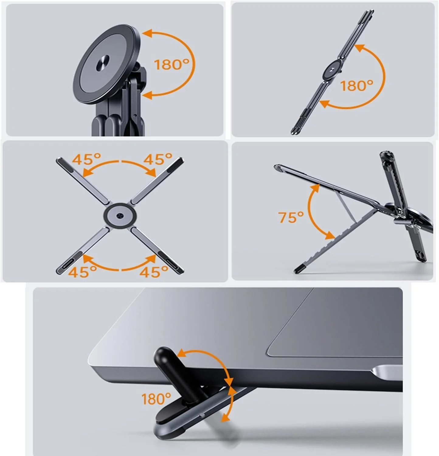 Premium Aluminum Design – Made from high-quality lightweight aluminum, this stand is sturdy yet portable, ensuring durability and stability for your devices.
